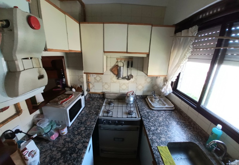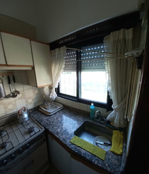 Ambiente con cocina integrada. Horno eléctrico a estrenar (el mismo se entregará colocado en altura para despejar y poder aprovechar la mesada) y 2 anafes/hornallas a gas. Heladera con freezer. microondas. Vajilla completa. Calefactor a gas, con tiro balanceado. Termo a gas, con gran capacidad de recuperación.