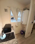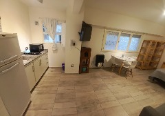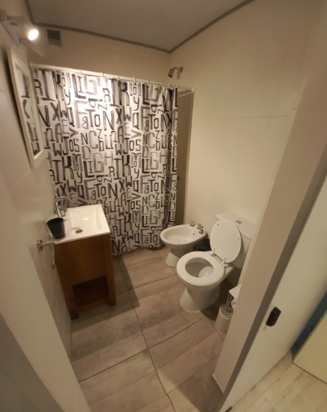 Ambiente con cocina integrada. Horno eléctrico a estrenar (el mismo se entregará colocado en altura para despejar y poder aprovechar la mesada) y 2 anafes/hornallas a gas. Heladera con freezer. microondas. Vajilla completa. Calefactor a gas, con tiro balanceado. Termo a gas, con gran capacidad de recuperación.