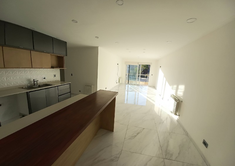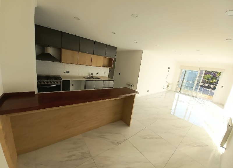 Cuenta con un amplio living-comedor, con cocina semi-integrada. La cocina está completamente equipada. Gran mesada de granito, amoblamientos amplios y de primera calidad. Campana de extracción. Espacio y conexión para lavarropas en bajo-mesada. Salida al patio, el cual cuenta con mesada, pileta y parrilla. Y una doble circulación desde el segundo dormitorio.