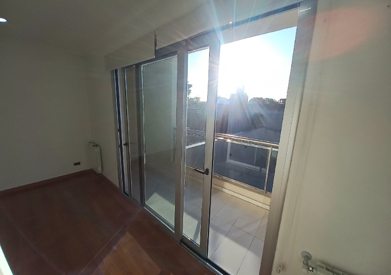 Departamento 3 ambientes al contra-frente abierto (muy luminoso, con orientación al sol del mediodía y tarde) , con amplio balcón corrido, con acceso desde el ventanal al piso del living-comedor y desde el dormitorio principal. Es en el primer piso, por escalera.