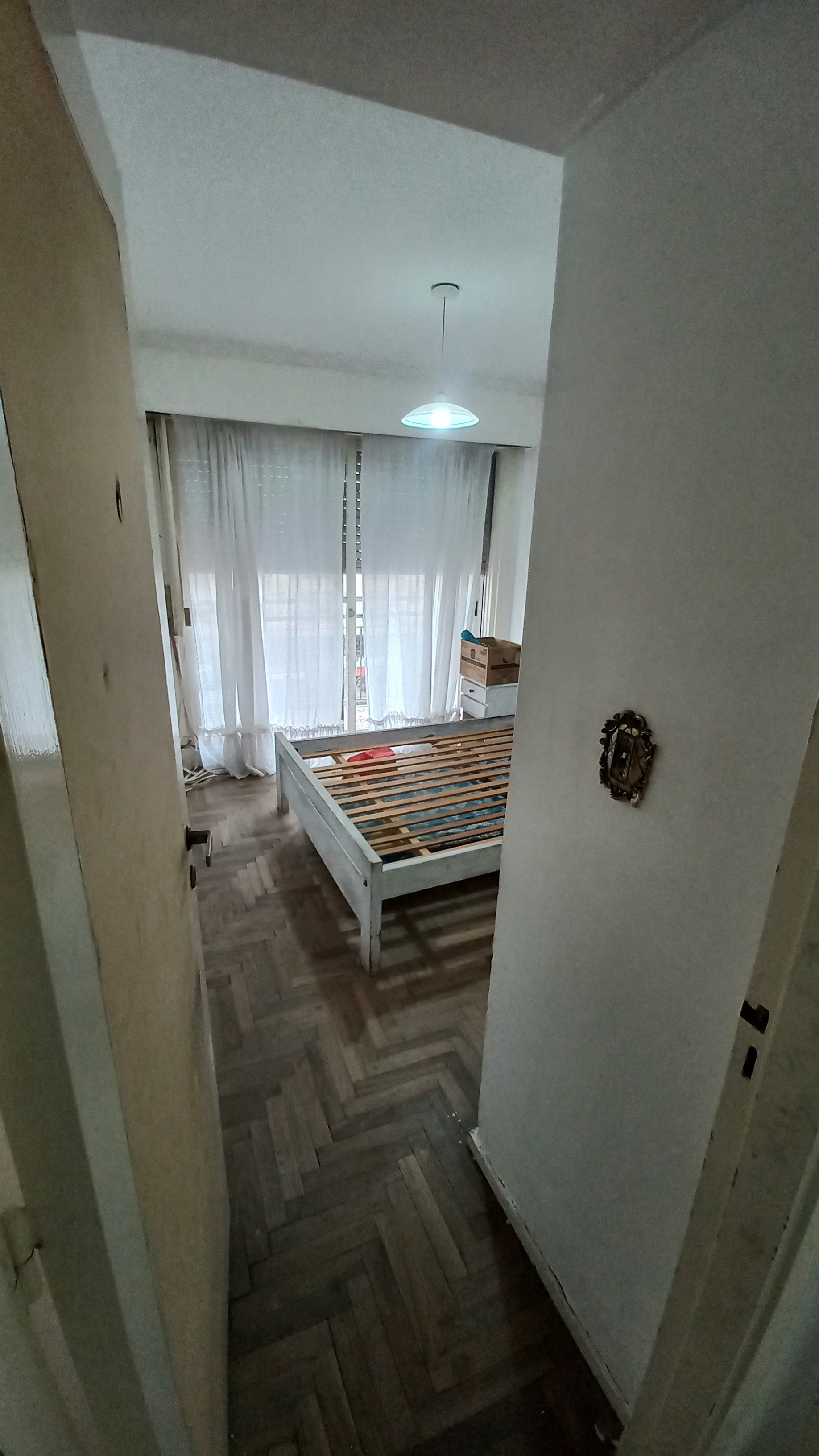 Luego cuenta con un living-comedor amplio, con ventanal al balcón. Dormitorio también a la calle y con ventanal al balcón. Pisos de parqué en el mismo, en buen estado, y amplio placar empotrado. Baño reciclado, completo con bañera y ventilación natural.