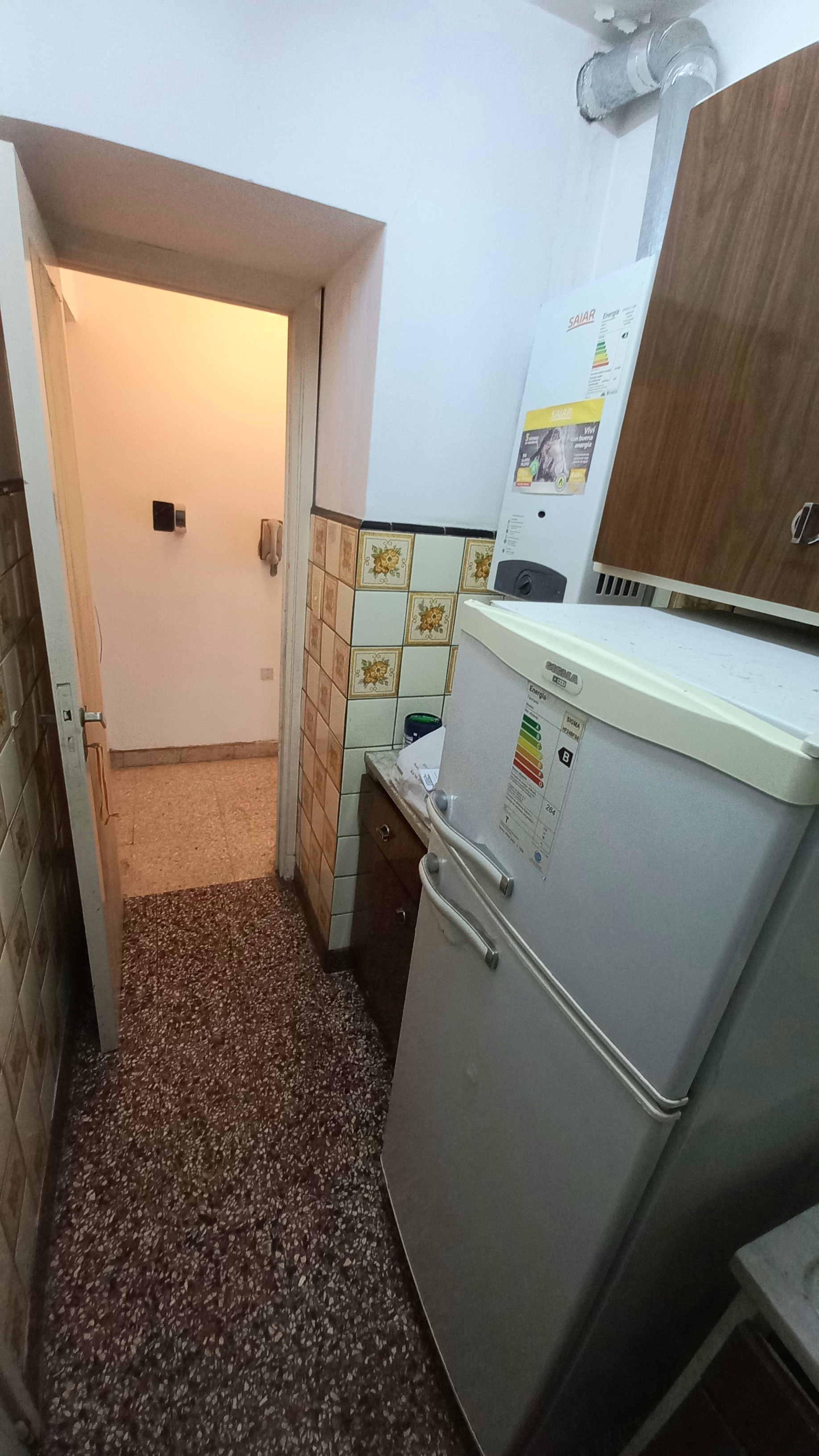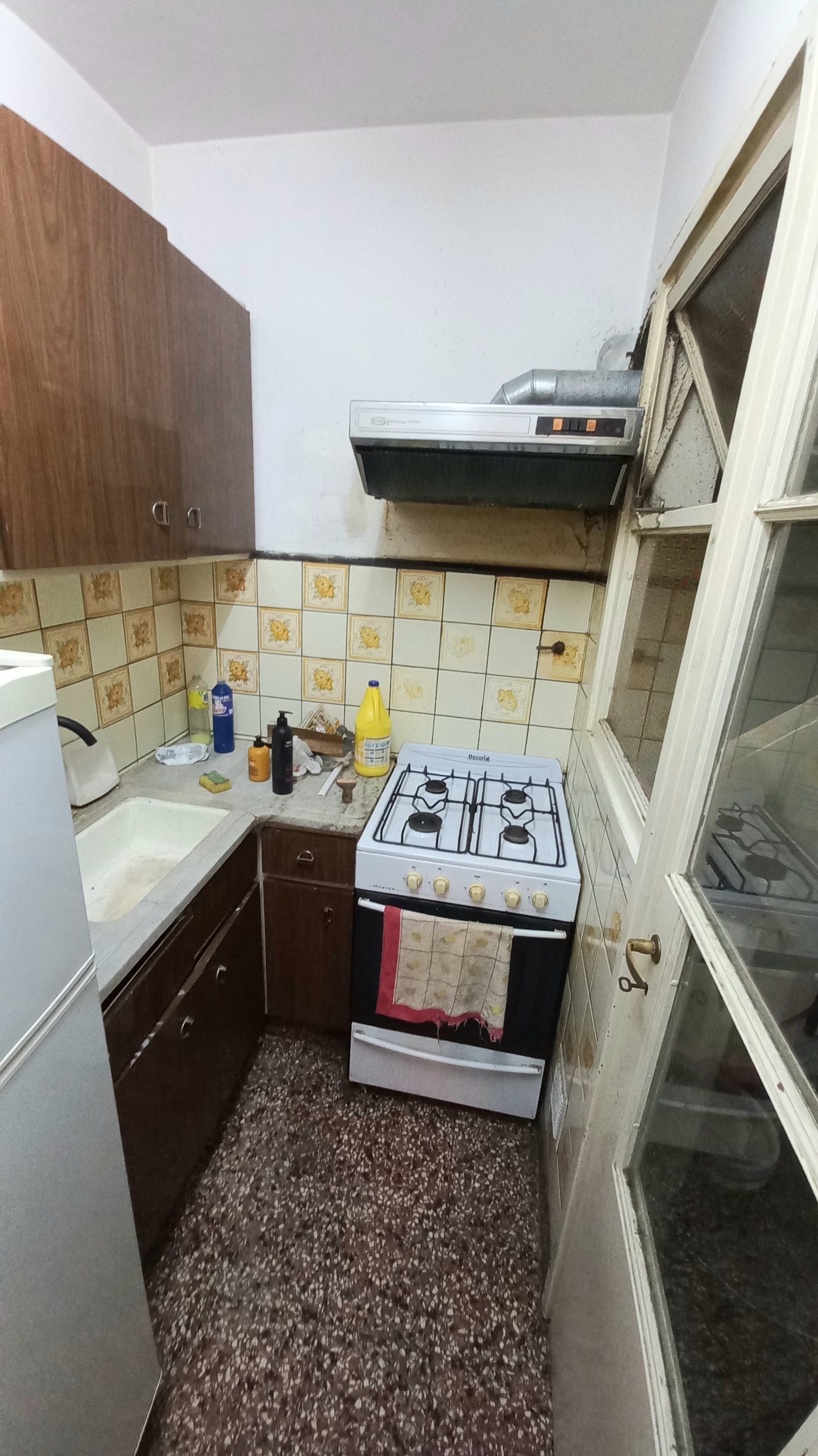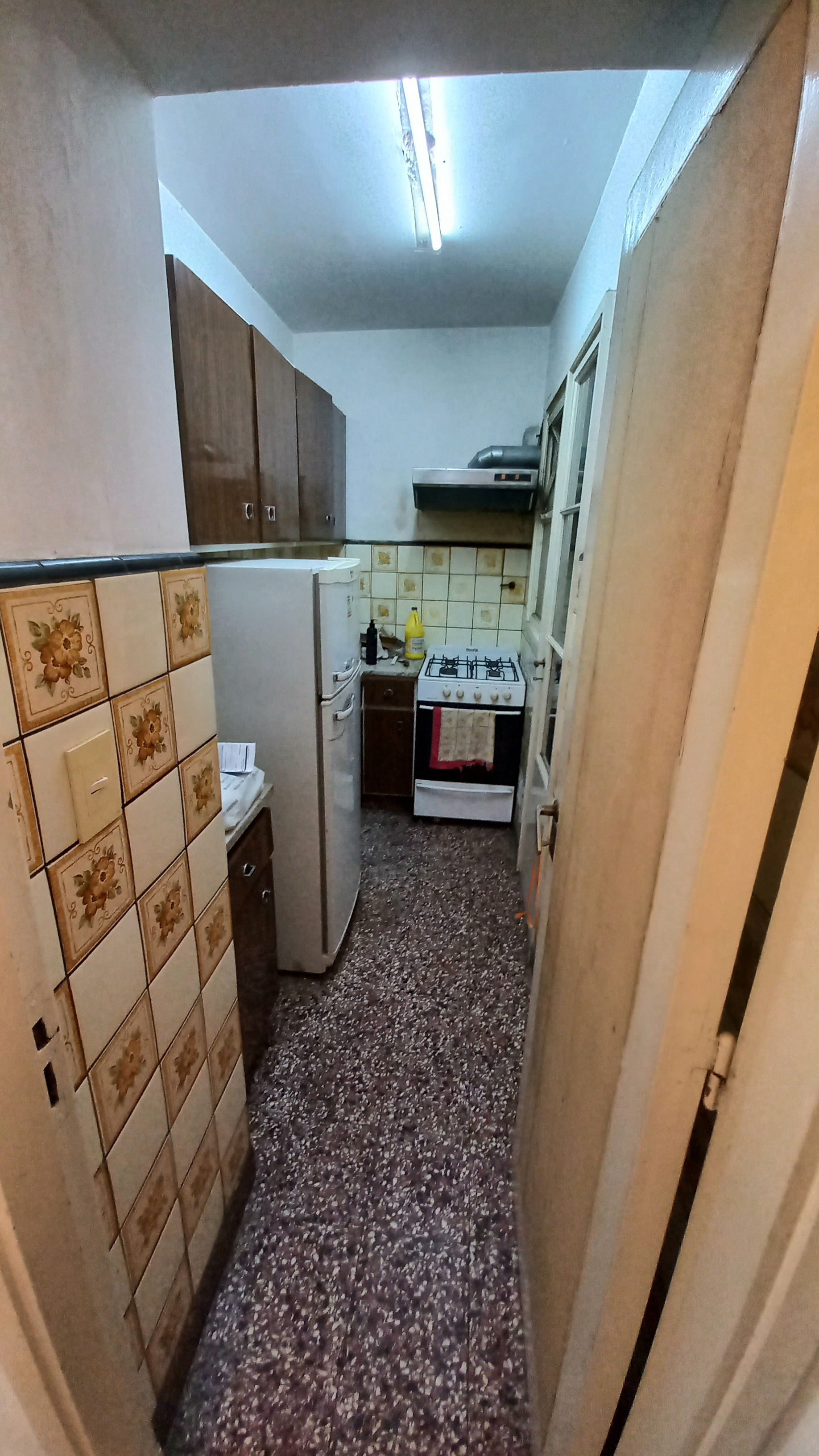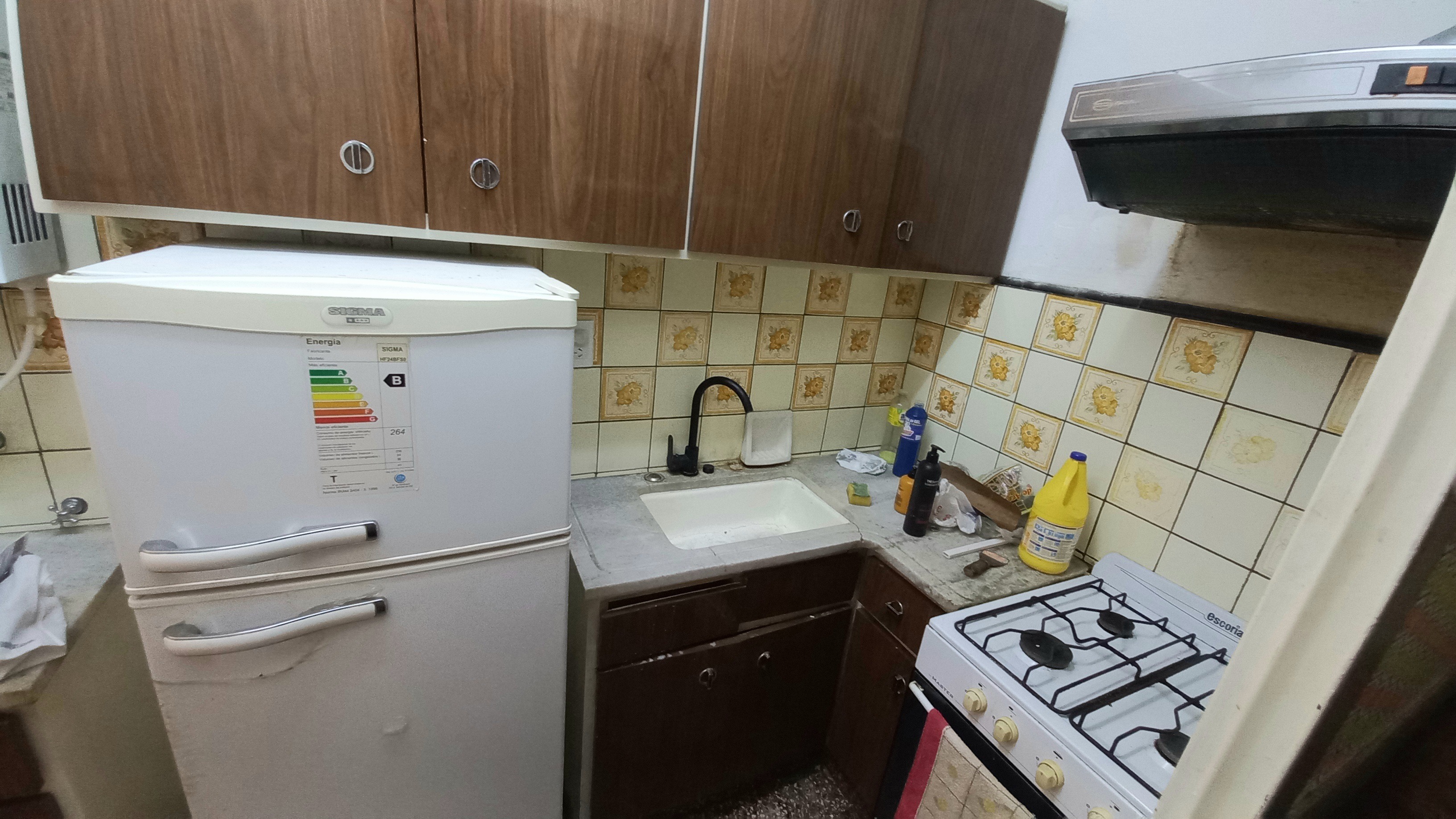 Al ingresar al departamento nos encontramos inmediatamente a la derecha con la cocina, la cual conecta al lavadero semi-cubierto, con espacio y conexión para lavarropas.