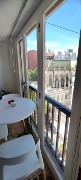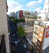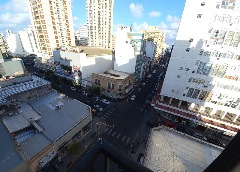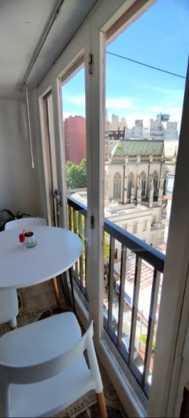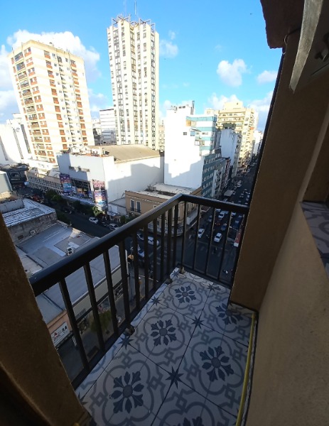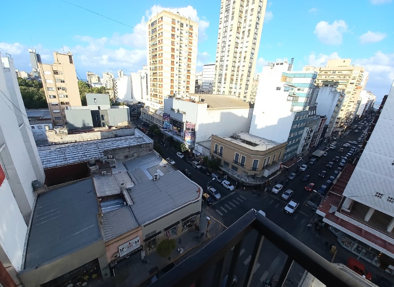 Departamento mono-ambiente al frente. Es a la calle y con balcón. Posee un balcón francés y un balcón saliente. Con mucha luz natural. Se encuentra en un octavo (8°) piso, lo que le brinda una vista panorámica privilegiada.