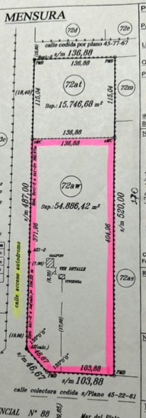El predio/lote cuenta con 54.886,42 metros cuadrados. Es decir, unas 5 hectáreas y media. Posibilidad de venta de fracción del lote, es decir, subdivisión y venta de una parte del mismo ( a conversar medidas de interés y valor, etc.).