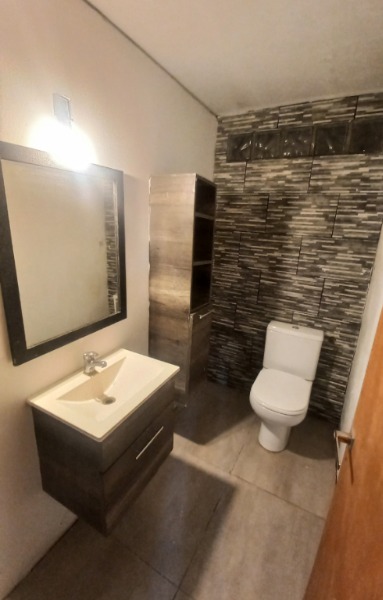 En planta baja posee un living-comedor amplio y luminoso, cocina semi-.integrada cómoda. Hall de distribución, hacia los 2 dormitorios, uno al frente y otro al contra-frente, baño completo con bañera. Garage amplio, con un segundo baño. Y patio amplio.